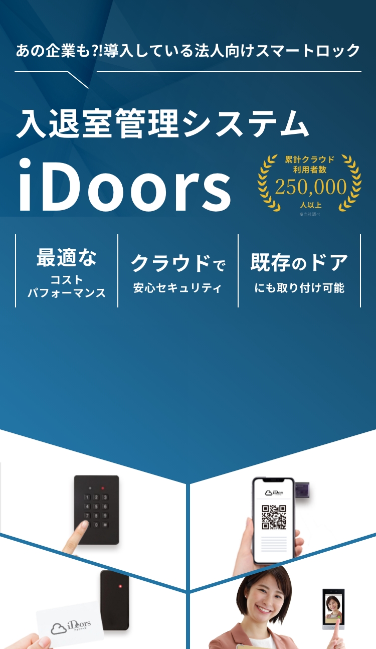 iDoorsは、不正入室を防ぐ高いセキュリティと、正確で改ざんできない履歴管理をクラウドで実現します。